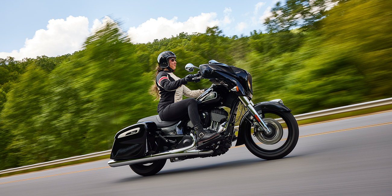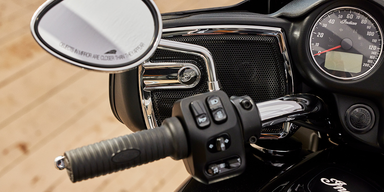 La Chieftain viene de fábrica con encendido sin llave, alforjas con cierre remoto, control de crucero y puerto de carga USB.