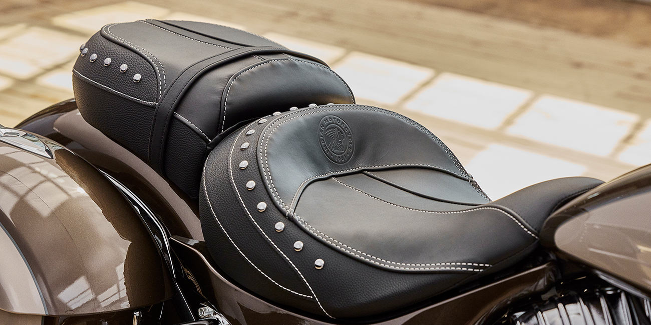 | Equipo Estándar | Parabrisas de liberación rápida; asiento de cuero genuino; alforjas rígidas con bloqueo remoto, defensas de carretera; control de la presión de los neumáticos; barra de luces; modos de manejo, ABS; control de crucero; encendido sin llave; emblema Indian® en el tanque; puerto de carga de 12 V. |