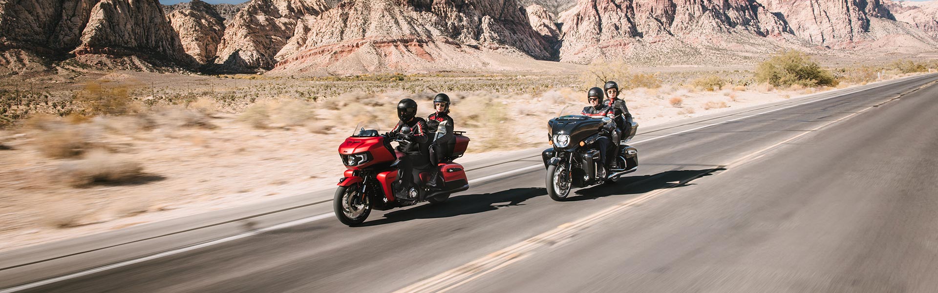 Los motores V-Twin PowerPlus o Thunderstroke de alta cilindrada equipados con tecnología de vanguardia proporcionan torque a bajas revoluciones y potencia de paso a altas revoluciones.